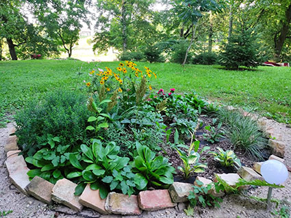 Pamūšas muižas parka sirds ir dzīvžogiem ieskautais garšaugu un puķu dārzs. Vēlamies to izveidot pēc 18. gs. mazo barokālo dārzu parauga. Dārzā būs vairākas atpūtas - relaksācijas vietas, kur varēs baudīt lauku mieru un priecāties par puķu krāšņumu. Balstoties uz rūpīgi savākto informāciju iespējams izveidot vēsturisko dārzu apstādījumus no mūsdienās pieejamajām šķirnēm un maksimāli tuvoties tai sajūtai, kāda varēja būt 19 gs. beigu muižas dārzā, kad dārzu modē valdīja eklektisms. Tās bija atskaņas no viduslaiku un baroka “izšūtā partera”, kas ar trešo vilni ienāca atkal citā izskatā. Mūsdienās aktuāli ir sajūtu dārzi, kas piedāvā dabas skaņu, krāsu un smaržu terapiju. Plānojam katrā dārza daļā izmantot citus augus, lai radītu šīs dažādās sajūtas.